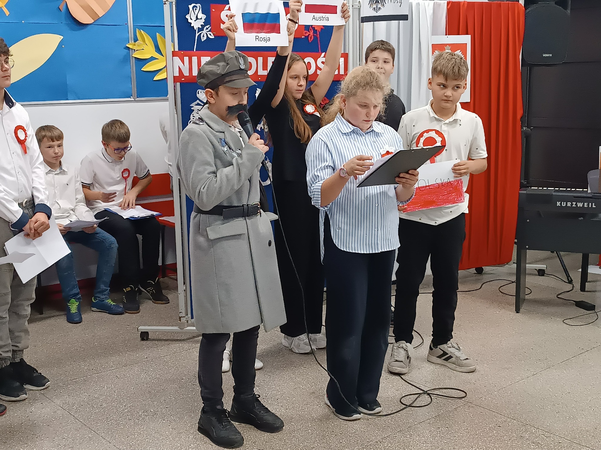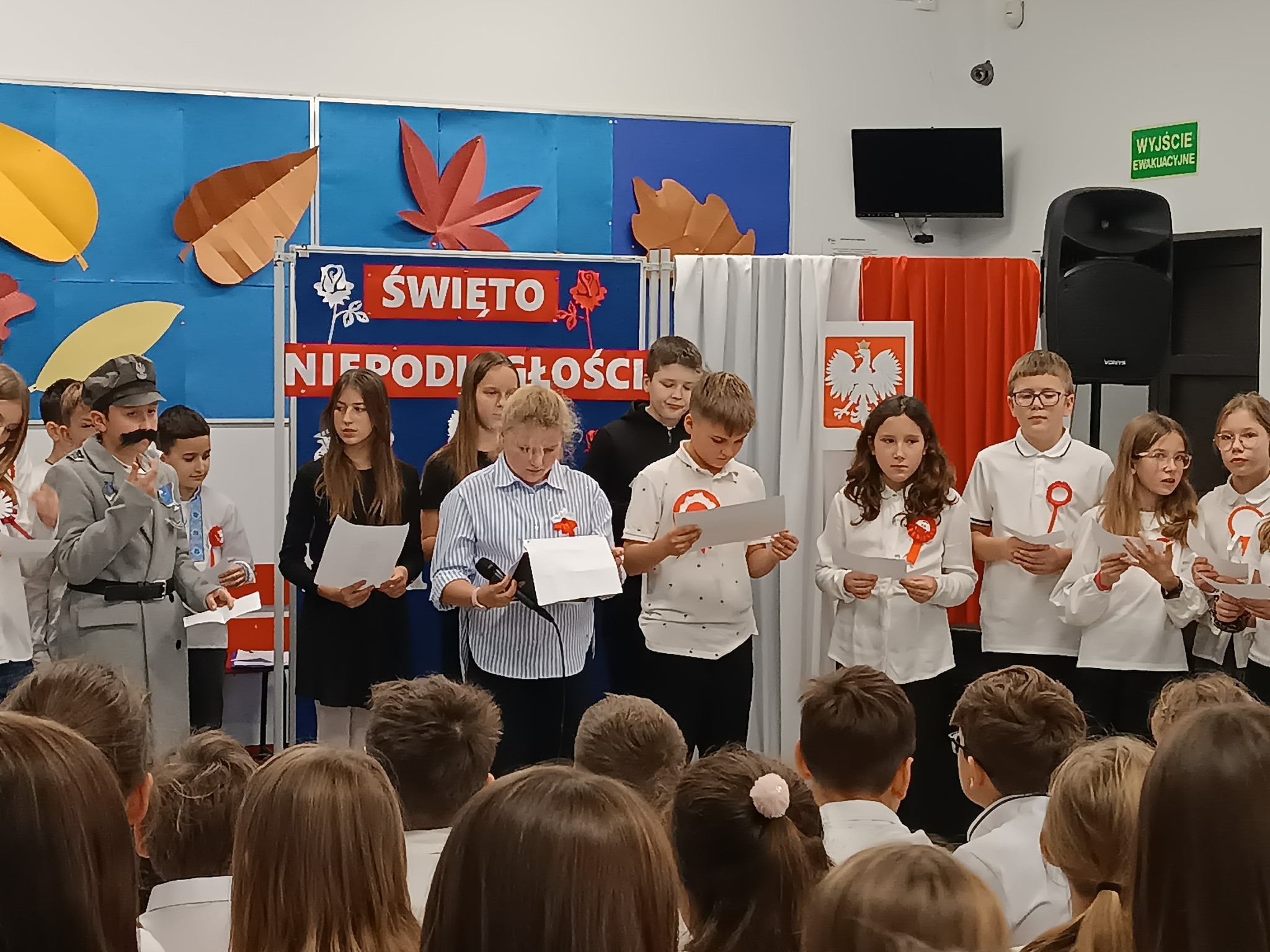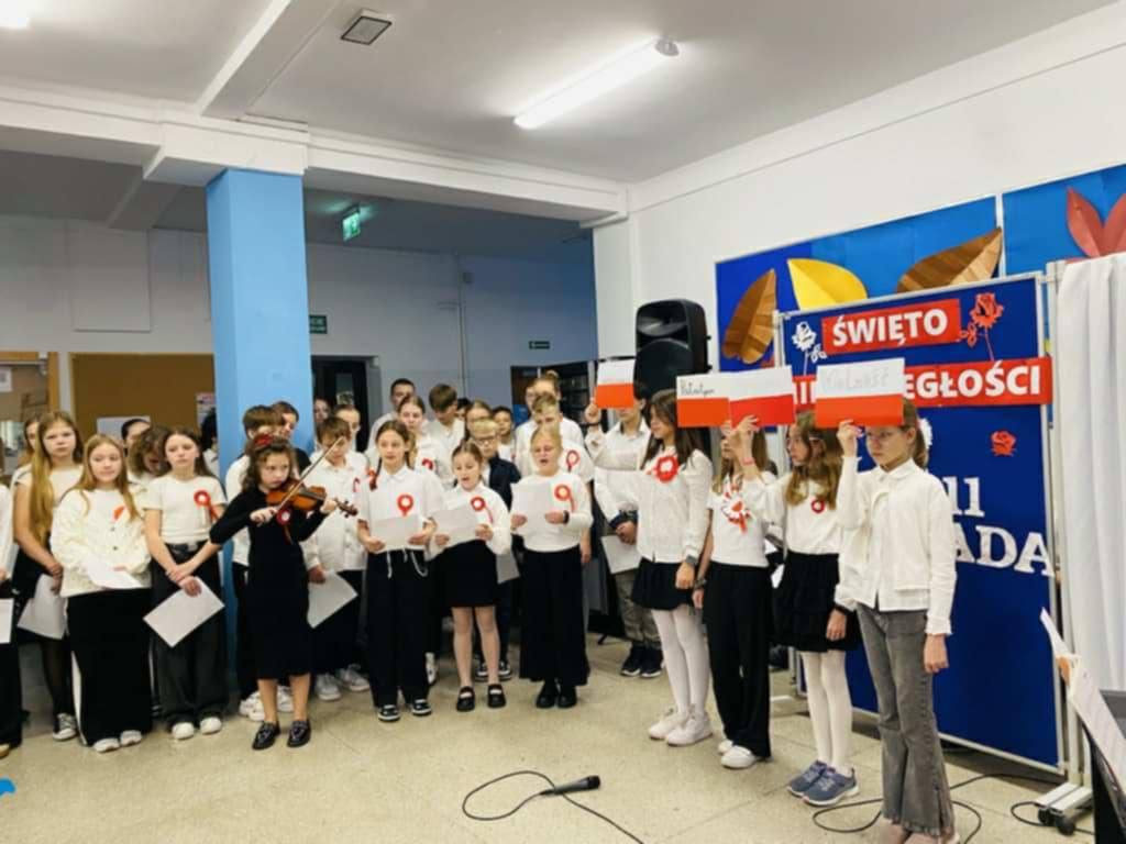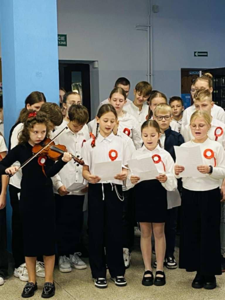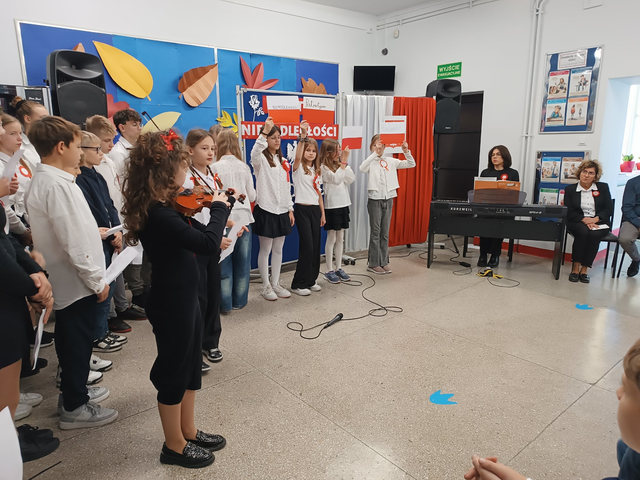 Uczniowie naszej szkoły wzięli dziś udział w uroczystym apelu z okazji 107 rocznicy odzyskania niepodległości przez Polskę. Część artystyczną przygotowali uczniowie a klasy 5a, którym towarzyszył chór złożony z uczniów z klasy 6a oraz 6b. Występ został uświetniony grą na skrzypcach i śpiewem pieśni patriotycznej w wykonaniu uczennic z klasy 3a. To była piękna lekcja patriotyzmu.